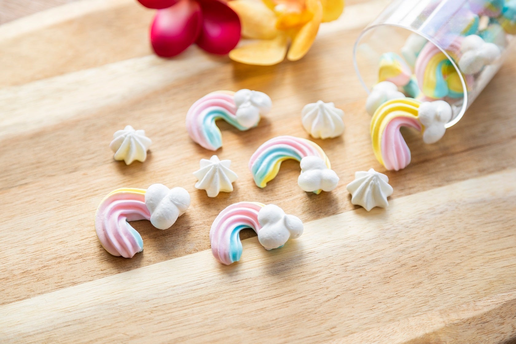・「ローレン・ロス」作品の象徴のひとつであるレインボーをモチーフにしたオリジナルメレンゲ菓子を販売 ¥650(税込)
