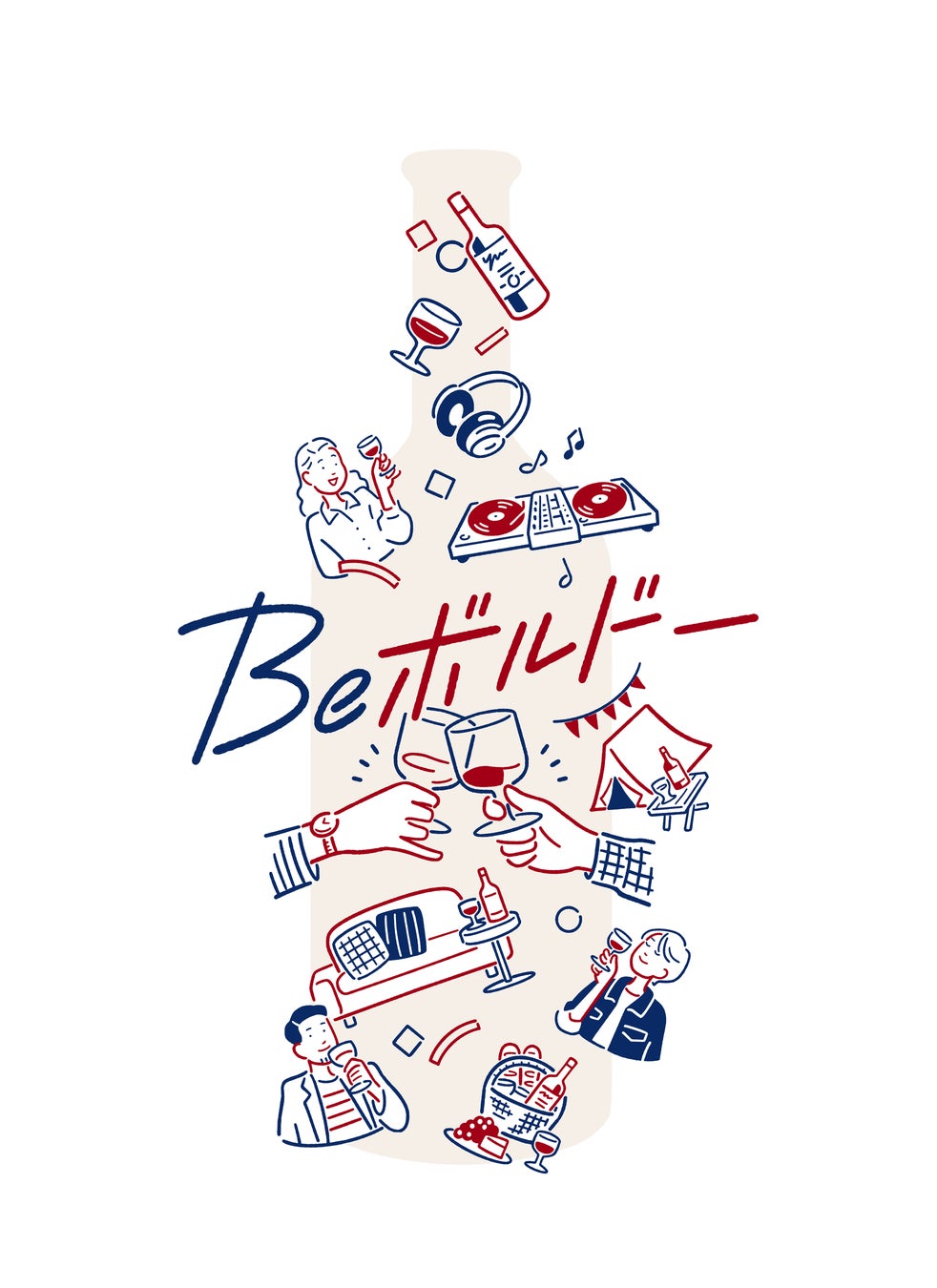 さらにアウトドアや音楽、リラックスタイムなど、ボルドーワインを気軽に楽しむ様々なシーンを描くことで、カジュアルで親しみのあるボルドーワインの世界観を表現しています。