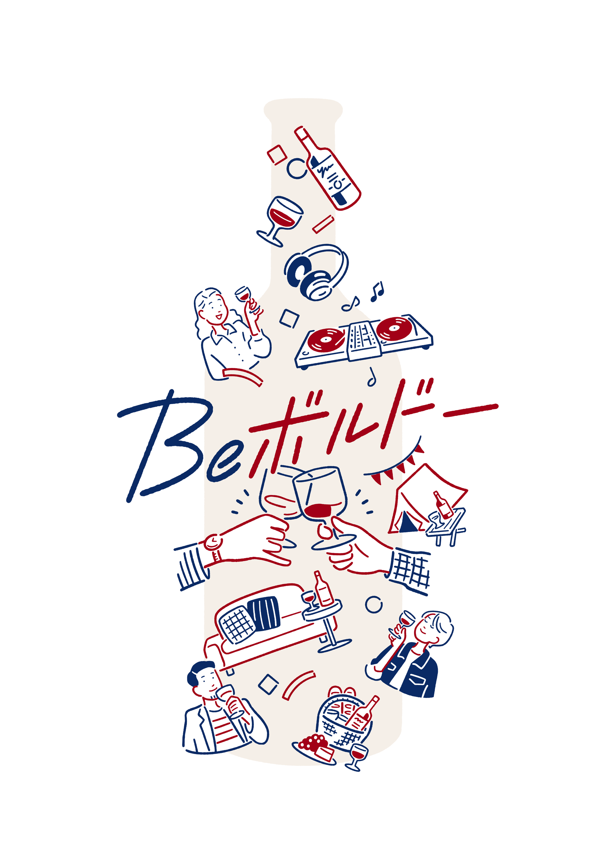 さらにアウトドアや音楽、リラックスタイムなど、ボルドーワインを気軽に楽しむ様々なシーンを描くことで、カジュアルで親しみのあるボルドーワインの世界観を表現しています。