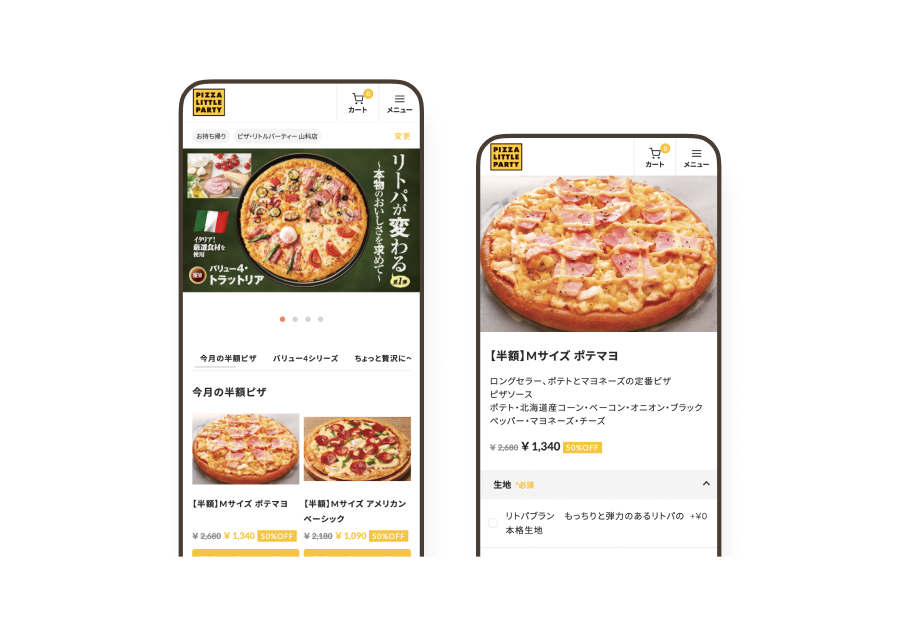 テイクイーツを導入済みの「ピザ・リトルパーティー」の店舗では、店舗WEBサイトから希望の受け取り日時や商品を選択し、簡単に事前予約注文・決済が可能になります。お客様は事前予約をすることで、お店で並ぶことなく受け取りが可能です。