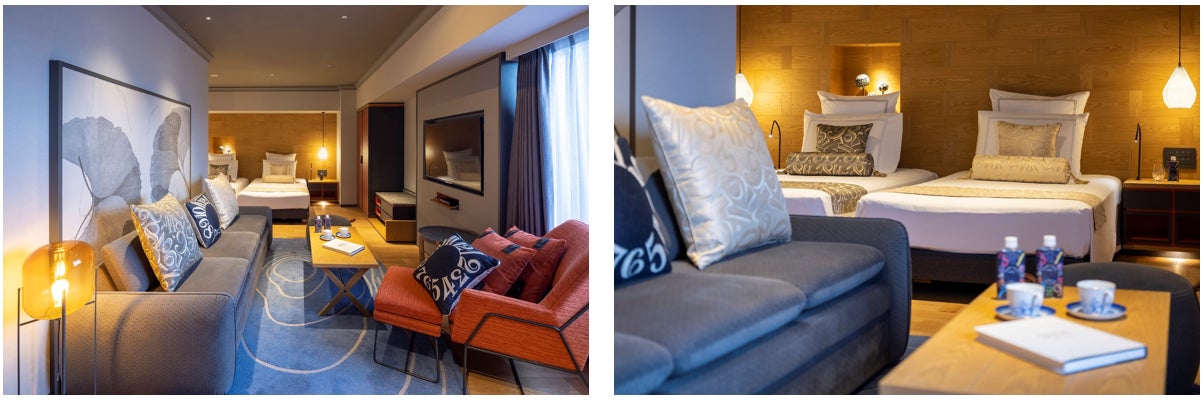 スイスホテル南海大阪のジュニア スイートにて、フランク ミュラーの世界の中で特別な夜を過ごせる、1日1組限定のコラボレーションルーム「フランク ミュラー フェスティブ ステイケーション」が登場いたします。ゴールド使いが美しいシックで高級感あふれるフットスローやクッション、ビザン数字が青のグラデーションで表現された日本製のグランブルーカップやカーベックスグラスなどをお部屋にご用意し、フランク ミュラーならではの豊かな時空間を演出。特典として、地上147mからの景色をお楽しみいただける「テーブル36」での朝食、スイス エグゼクティブ クラブラウンジへのアクセスもお楽しみいただけます。“時を刻む”フランクミュラーがお届けする、ホリデーシーズンを彩る”タイムレス“なひとときをお過ごしください。