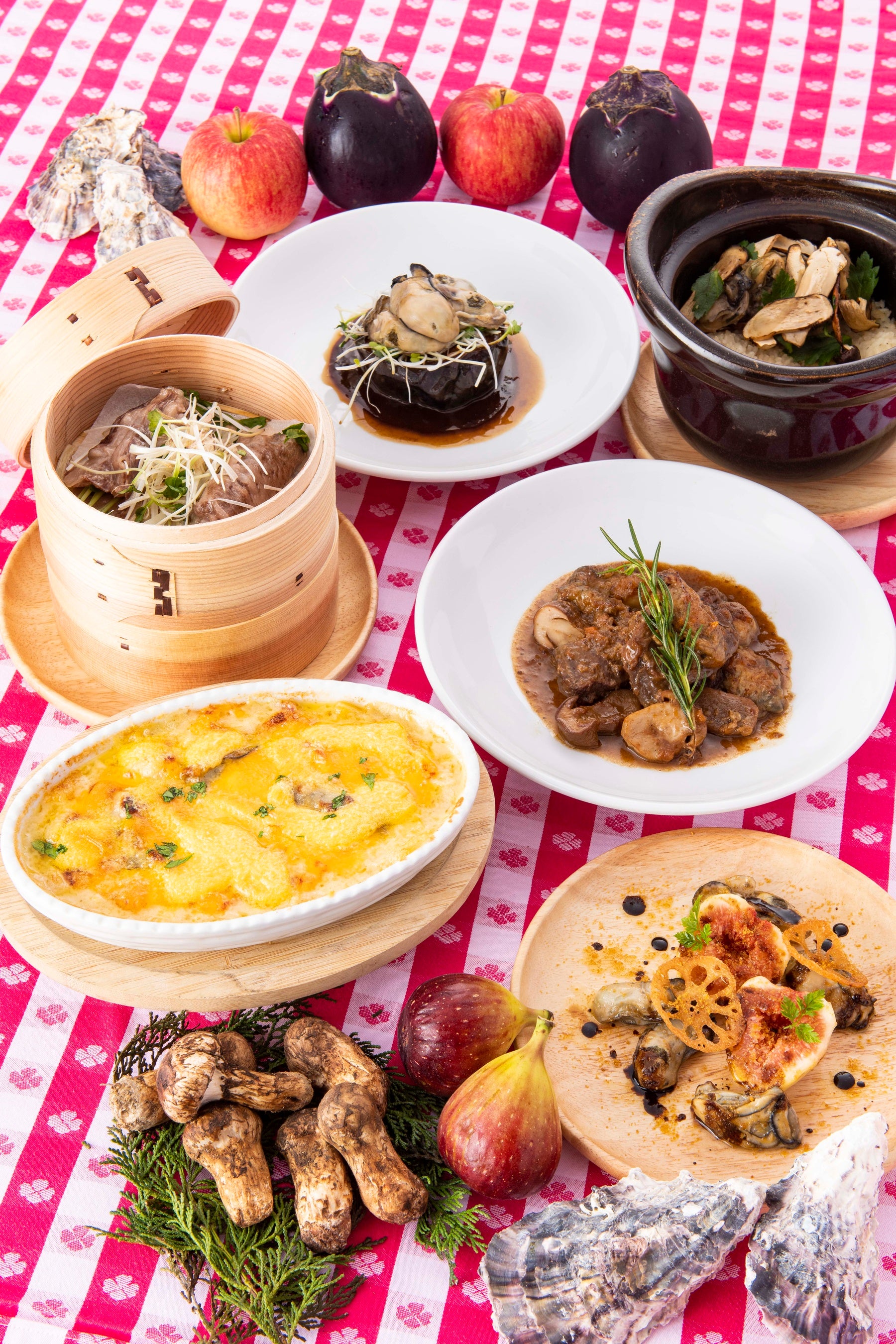牡蠣をメインに秋の旬食材でアレンジした料理6品の提供