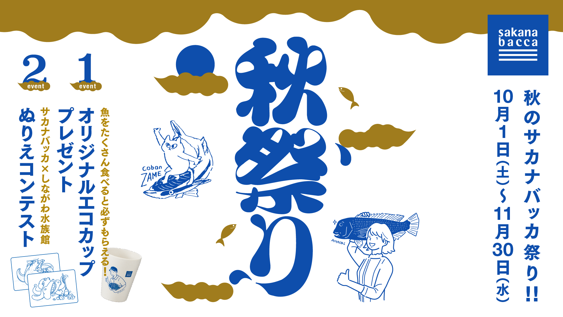 生鮮流通のDXを推進する株式会社フーディソン(本社:東京都中央区、代表取締役CEO:山本徹、以下当社)は、2022年10月1日(土)より一般消費者を対象にsakana bacca全店舗にて『秋のサカナバッカ祭り』を開催いたします。期間中には、人気イラストレーターとコラボレーションしたオリジナルエコカッププレゼント企画や、しながわ水族館の鑑賞チケットが当たる「サカナバッカぬりえコンテスト」など多数のイベントを開催予定です。