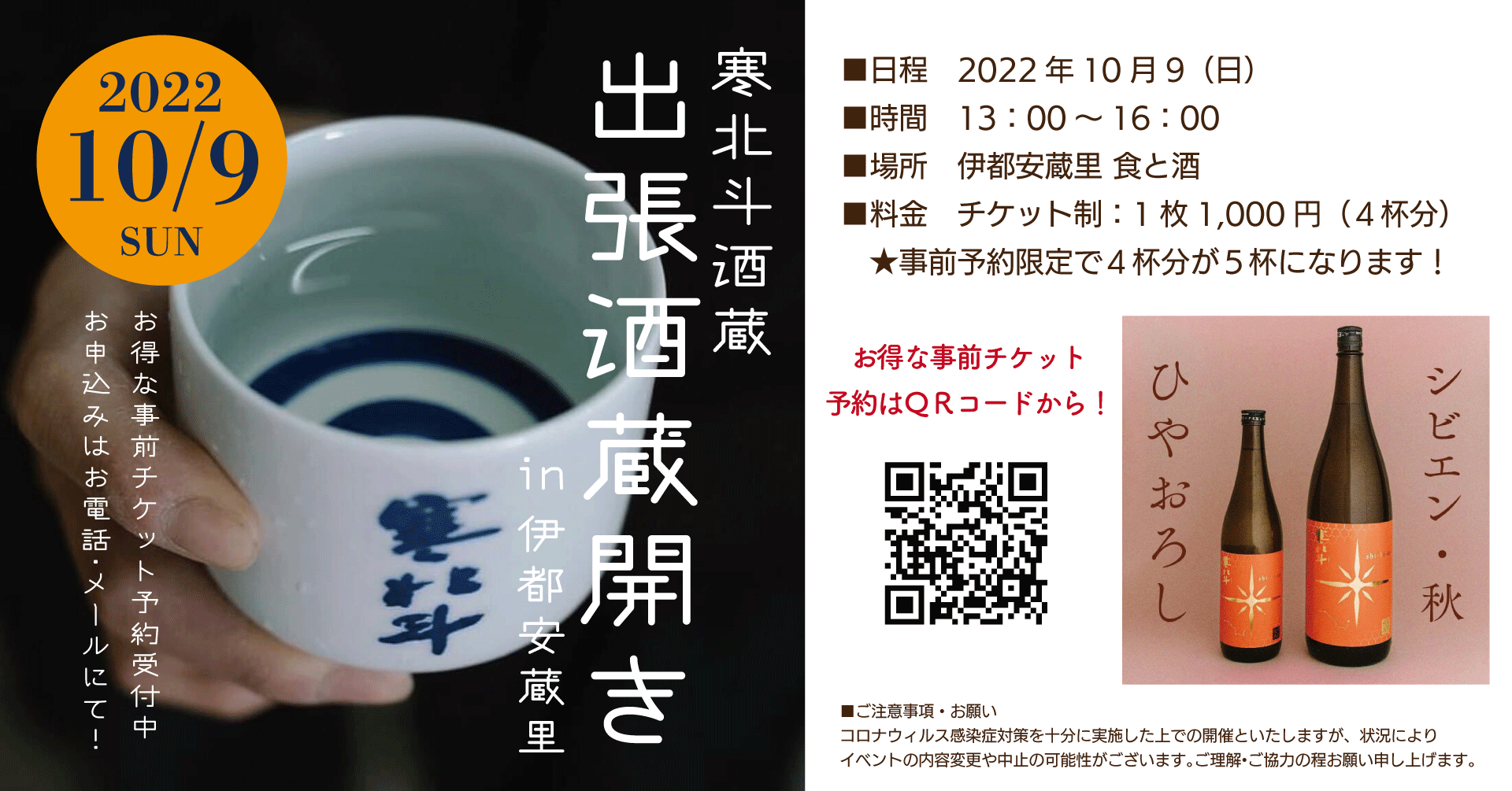 このたび、伊都安蔵里では、「寒北斗酒造」とのコラボイベントとして、秋夏限定の日本酒を存分に味わえる出張酒蔵開きを10/9(日)に開催いたします。