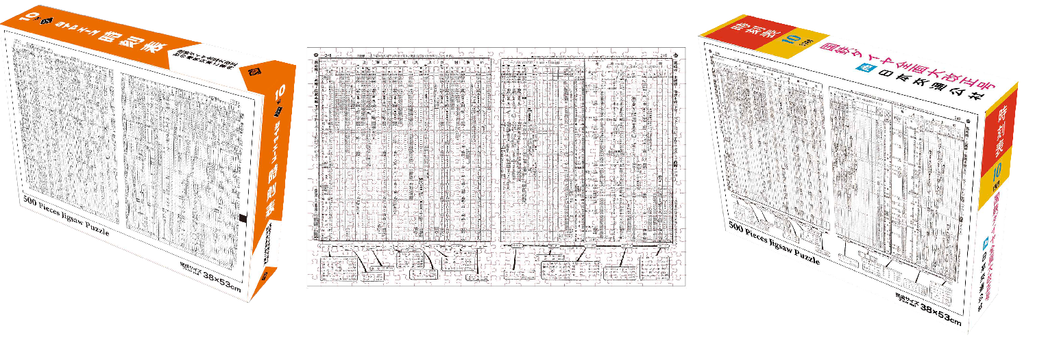 国鉄全盛期を象徴する「よん・さん・とお」でお馴染み昭和43年10月1日のダイヤ改正で発売された大人気の時刻表を用いたシュールで高難度のジグソーパズルです。
