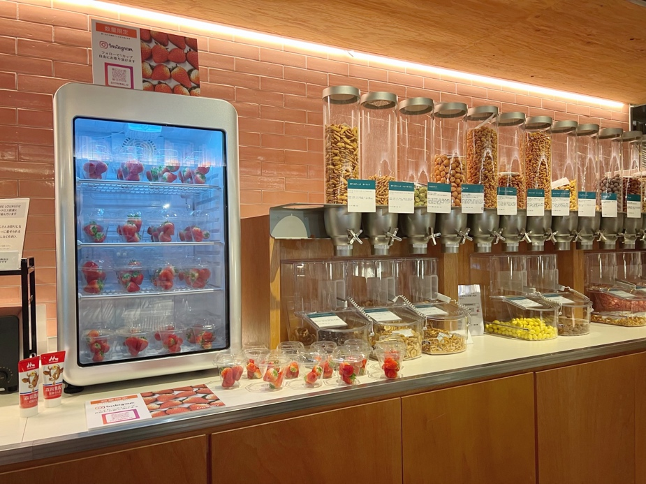 SHARE LOUNGEではフリーのドリンクやミックスナッツなどの飲食物を多数用意しておりますが、加えて「City Farming」産のいちごをご提供いたします。ほどよい酸味が、お客様のクリエイティブな時間を刺激します。