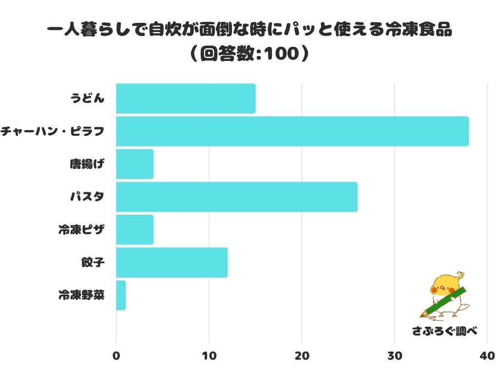 一人暮らしで自炊が面倒な時にパッと使える冷凍食品をアンケートにて調査したところ、1位は「チャーハン・ピラフ」でした。