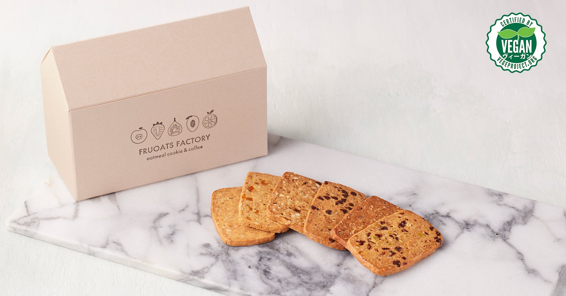 フルオーツはスーパーフードのオートミールやおから、チアシード、アマニなど100%植物由来の素材でつくられたグルテンフリークッキーです。