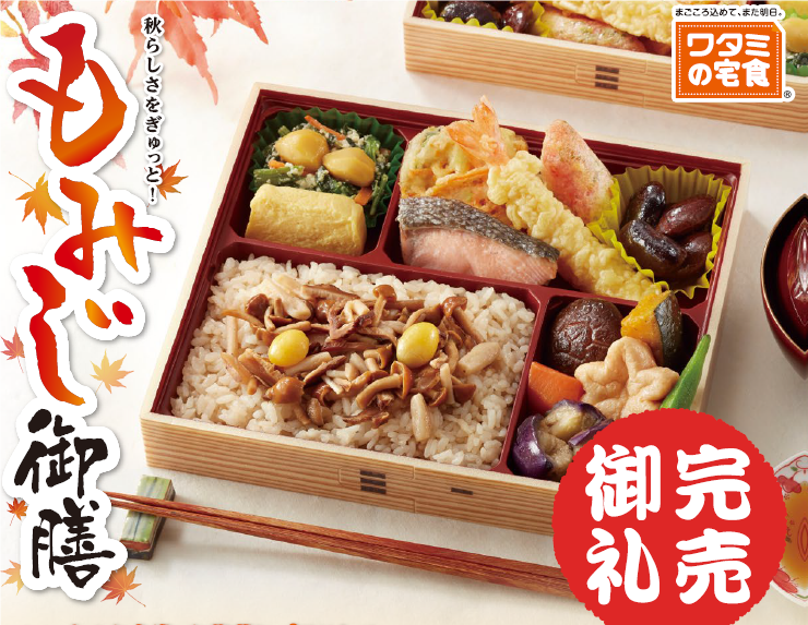 ワタミ株式会社(東京都大田区、以下ワタミ)の提供する食事宅配サービス「ワタミの宅食」が販売した「もみじ御膳」は、販売目標を大きく超え、計画比135%、2万7千食を売り切り、完売いたしました。
