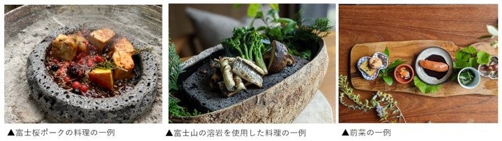 「木々が薫り 光がゆれる 境界のない森のリゾート」をコンセプトに、レストランでは薪や富士山の溶岩石を調理に使用しており、地産の食材が活かされたオリジナルの日本料理をご提供しております。今回のワインとは、海の幸・山の幸で構成された彩り豊かな前菜や、山梨のブランド豚「富士桜ポーク」を使用したお肉料理、また川魚とも相性抜群。コースの最初から最後まで飽きることなくお愉しみいただくことができます。