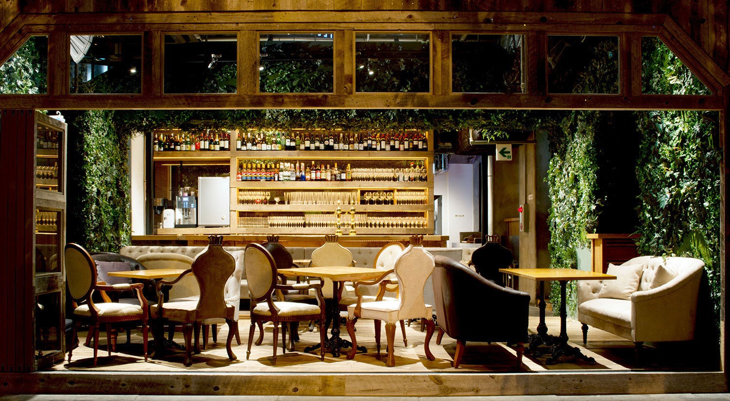 全天候型のインナーテラスとグリーンに包まれた店内でタイムレスな空間を贅沢に堪能ください