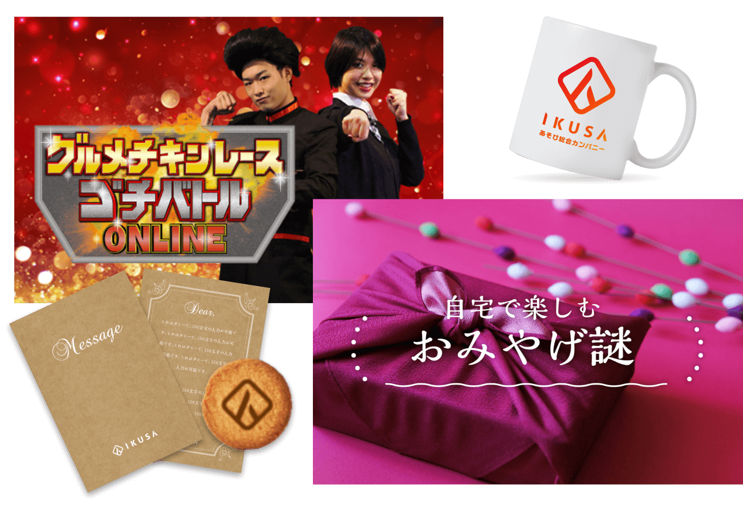 食べておいしいのは当たり前。ただ食べるだけでなく、食べた高級料理の金額を当てるゲームや、動画を観たりお肉を食べて一流の品を当てるゲーム、食事と一緒に届く本格アナログ謎解きなど、エンターテイメントを組み合わせることで、企業のオンラインイベントの一体感を高めます。