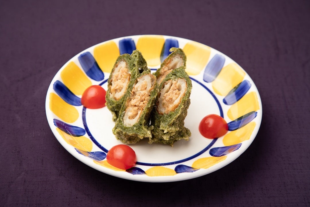 カツオのツナ缶を使用したサラダを、ちくわで挟んでサクっと揚げました。お酒との相性も◎です。