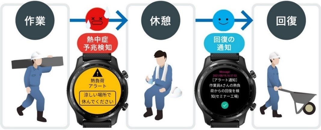 ・回復状態も検知し、現場での適切な休憩および現場復帰を促す
