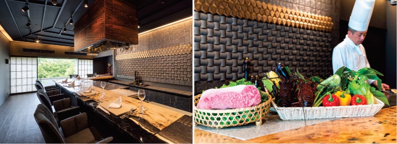 黒を基調とした高級感を感じるモダンな内装の室内で、シェフが目の前で焼き上げる季節の素材と技を活かしたお料理をお楽しみいただけます。