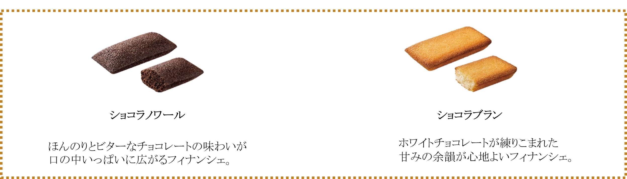ダークチョコレートとホワイトチョコレートそれぞれの特長を味わえる「ショコラノワール」と「ショコラブラン」の2種類のフィナンシェをご堪能ください。