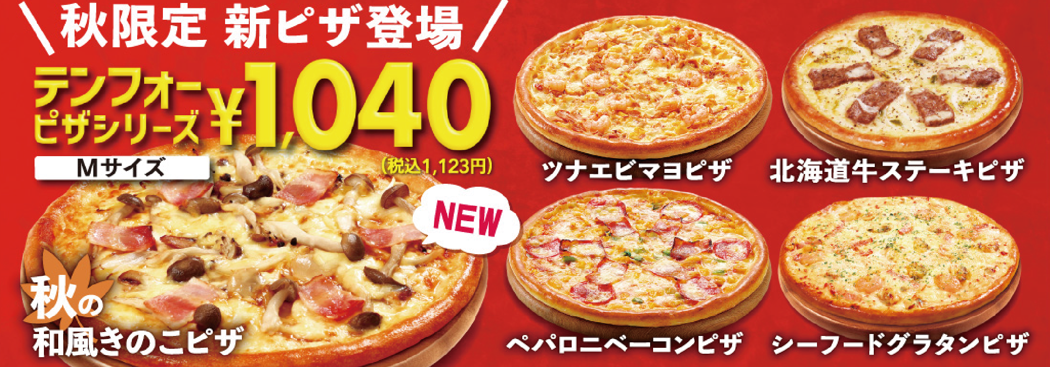 ワクワクが止まらない新商品が続々登場。食欲の秋はテンフォーのピザでお腹いっぱい大満足。この機会にぜひ!