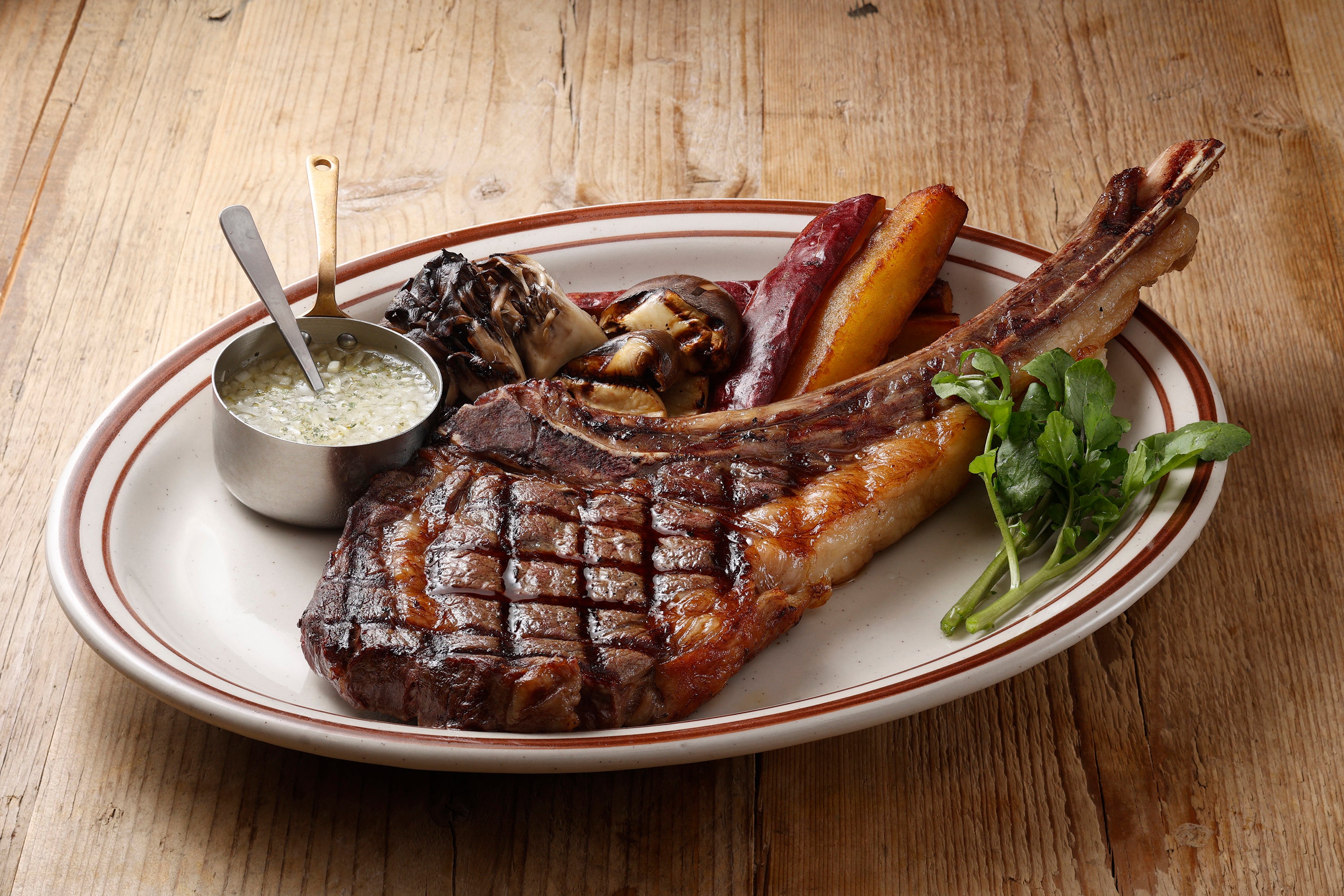 厳選されたアメリカ産ブラックアンガスの骨付きリブアイをトマホークスタイルで楽しむシズラー渾身の一品。