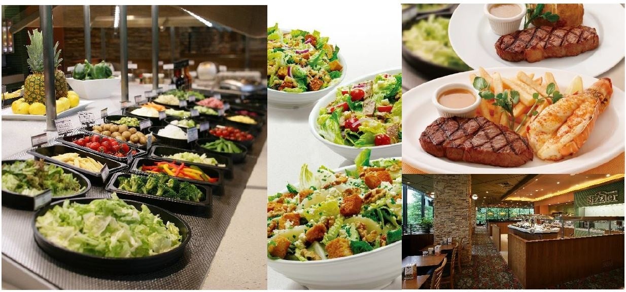 シズラーは、1958年にアメリカ・カリフォルニア州創業、1991年に日本で開業し、現在国内で10店舗を展開しているサラダバー&グリルレストランです。サラダバーには新鮮な野菜やフルーツ、スープ、サラダ、タコス、デザート、ドリンク等70種類以上のバラエティ豊かなラインアップを取り揃えています。