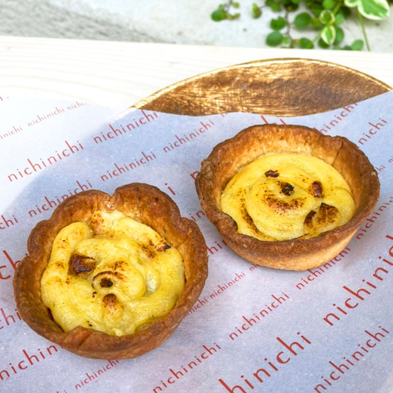 さつまいもを裏漉しして、自家製カスタードクリームとアーモンドクリームを詰め込んだ、サクサクタルト。