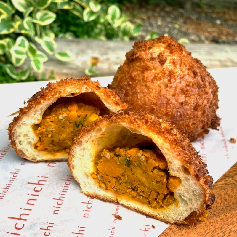 “いのうえのうえん”さんのかぼちゃ【伯爵】と、自家製カレーをたっぷり包んだカレーパン。