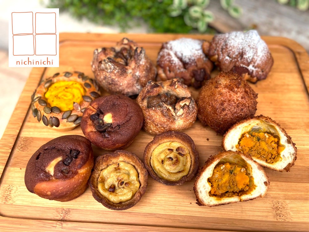 「nichinichi(ニチニチ))は、国産小麦100%・地場野菜・地場卵を使用した、身体に優しくておいしいパンを、毎日丁寧に焼いています。 皆様の日日に寄りそい、生産者との架け橋になるようなお店を目指して参ります。