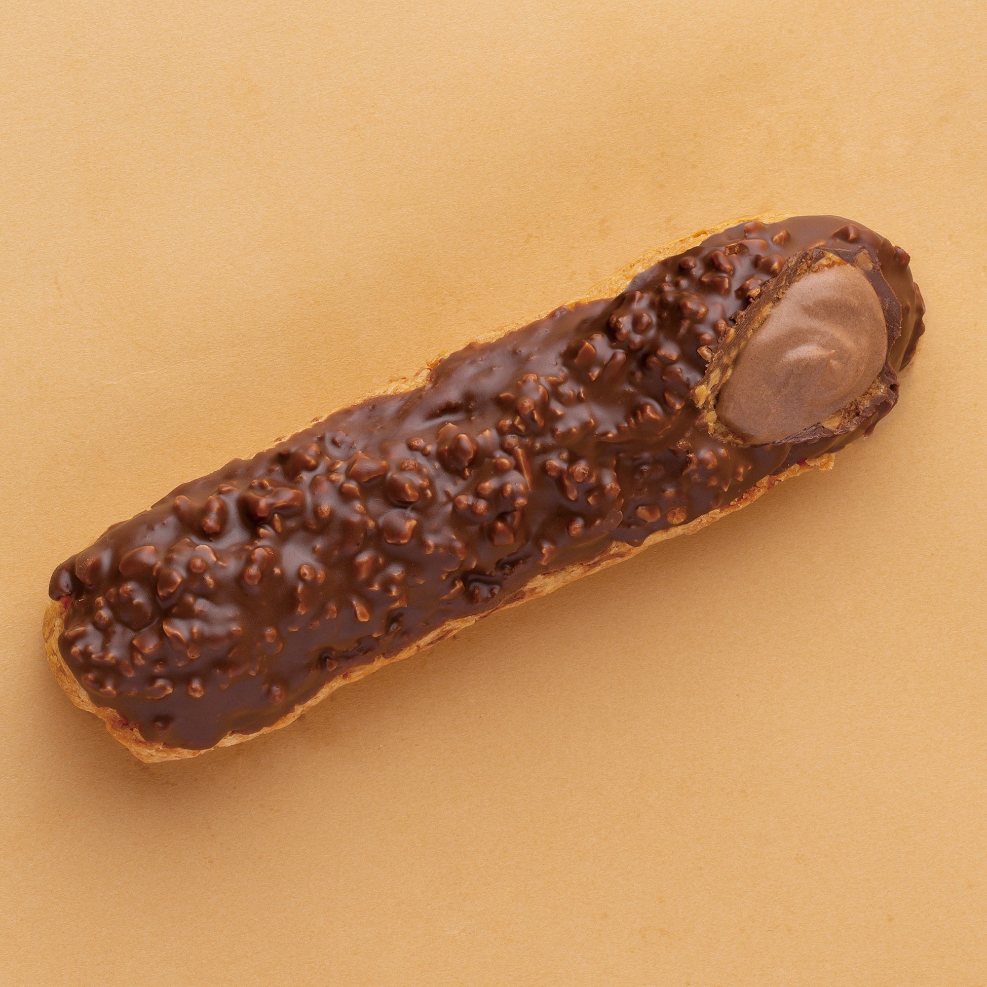 小枝のサクサク感とチョコレート、アーモンド、パフの絶妙な味わいを再現しました!サクサクとまらない、後引くおいしさのシュークリームです。