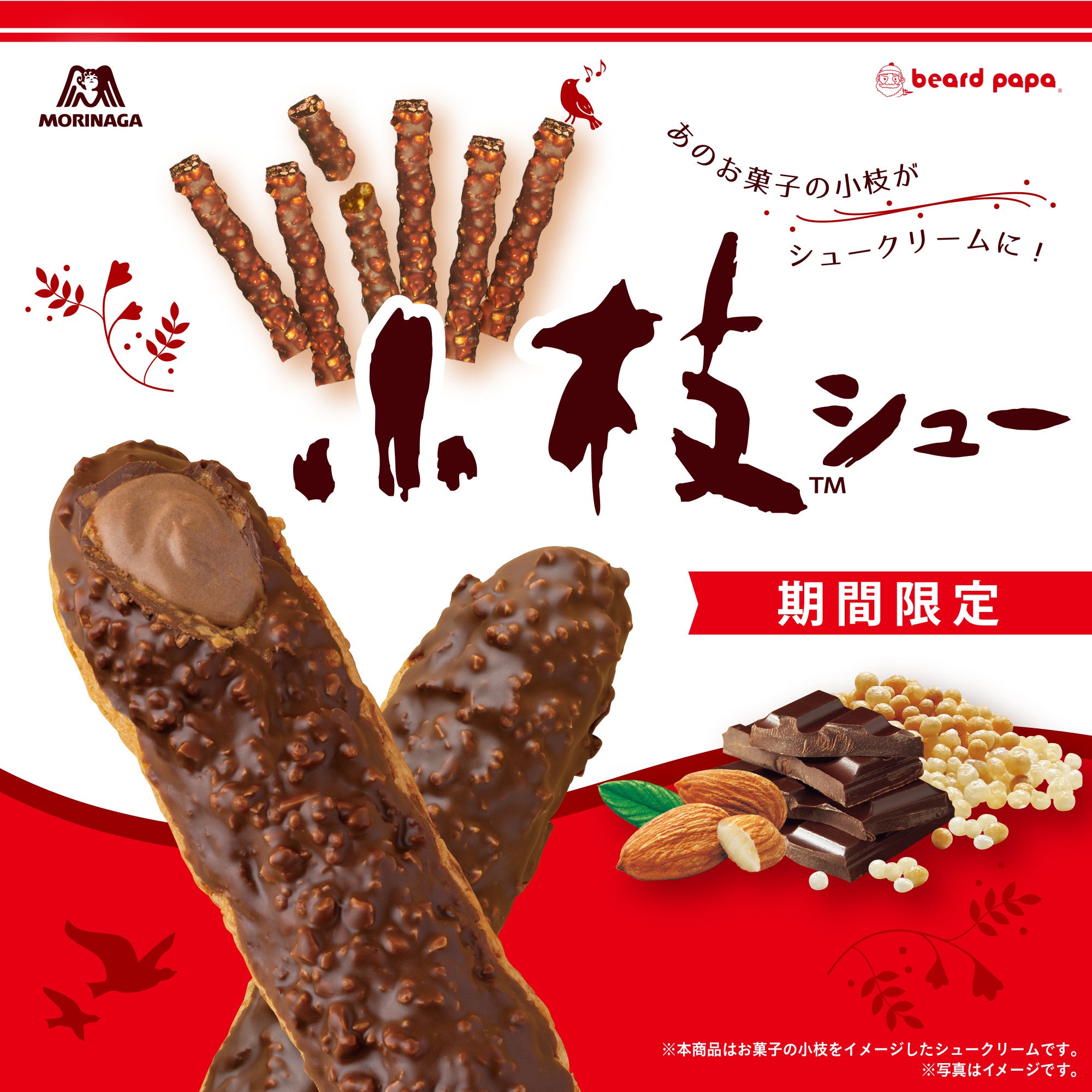 株式会社麦の穂(本社:大阪府大阪市北区、代表取締役:杉内 健吉)は、シュークリーム専門店ビアードパパにて2022年9月1日より、森永製菓株式会社(本社:東京都港区、代表取締役社長:太田 栄二郎)のロングセラー人気菓子“小枝<ミルク>”とのコラボシュークリーム“小枝シュー”を販売いたしております。