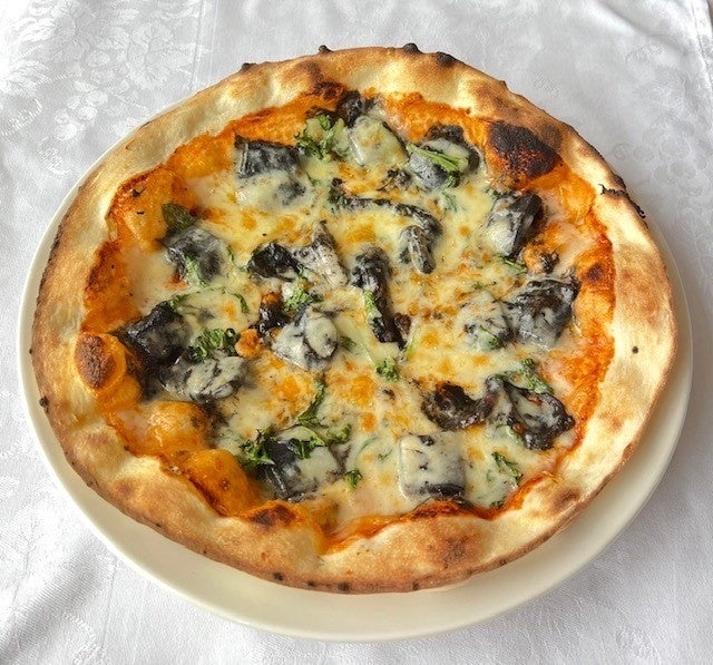 この時期に福井県でも旬をむかえるアオリイカは、栄養を蓄えており肉厚でとても味わい深くコリコリとした食感が特徴です。イカ墨を使ったセピアソースでアオリイカをコーティングすることで、うま味を閉じ込めています。ピザに塗った酸味豊かなトマトソースとの組み合わせをお楽しみ頂けるピザです。