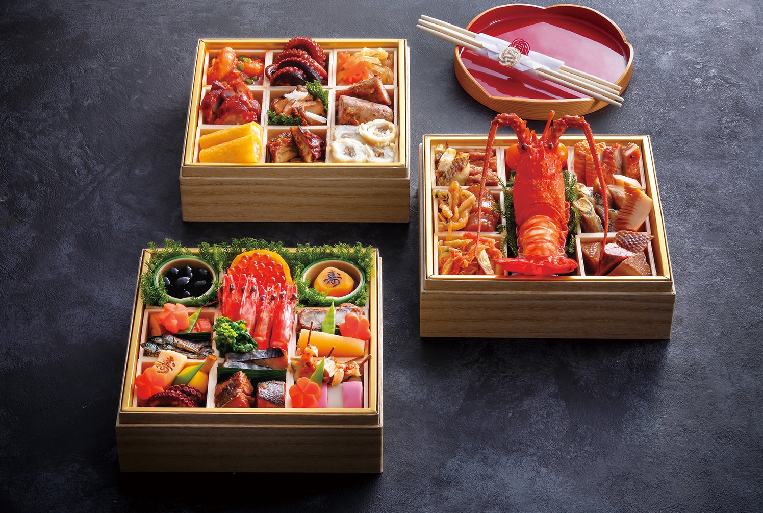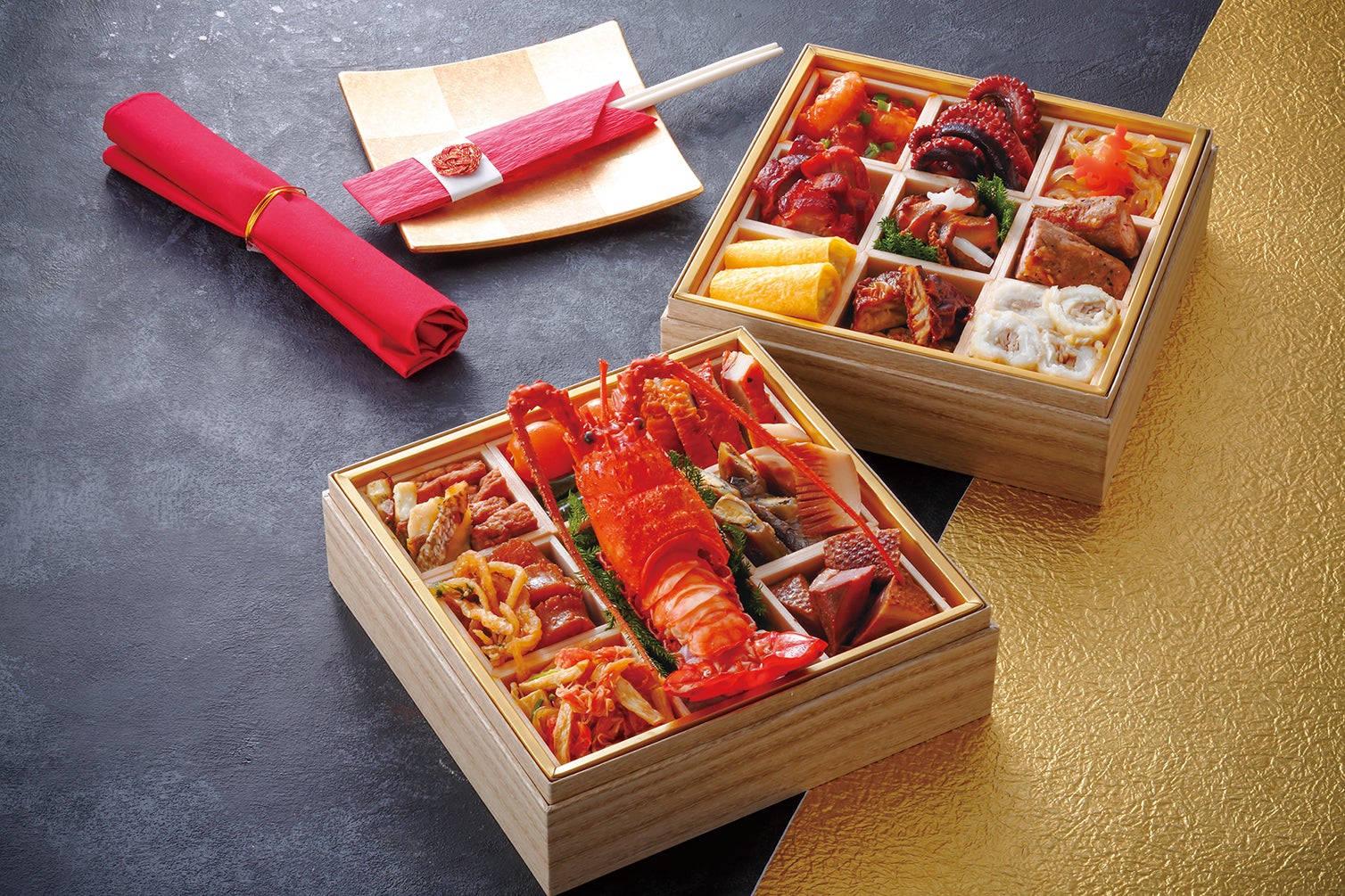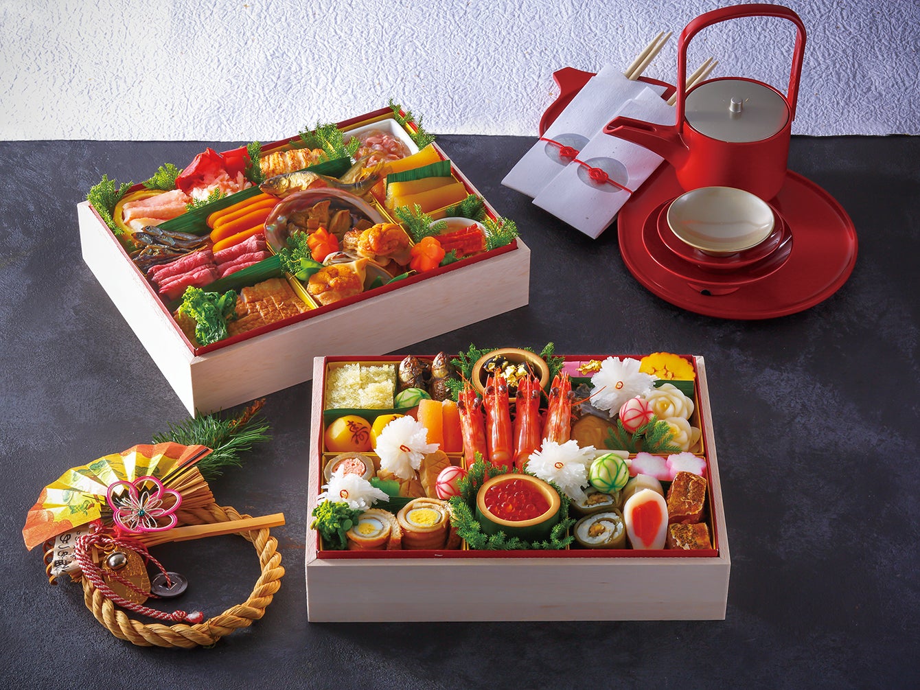 料理人の技と厳選食材による最高傑作“和食料理長 北原省吾「匠」のおせち2段”や、伝統的な和の味覚を「つきぢ田村」流に仕上げた“神戸 たむらの和風おせち料理2段”、香り豊かな広東料理の名菜が並ぶ“聚景園の中国風おせち料理2段”など、贅を尽くしたおせち料理の数々を取り揃えております。