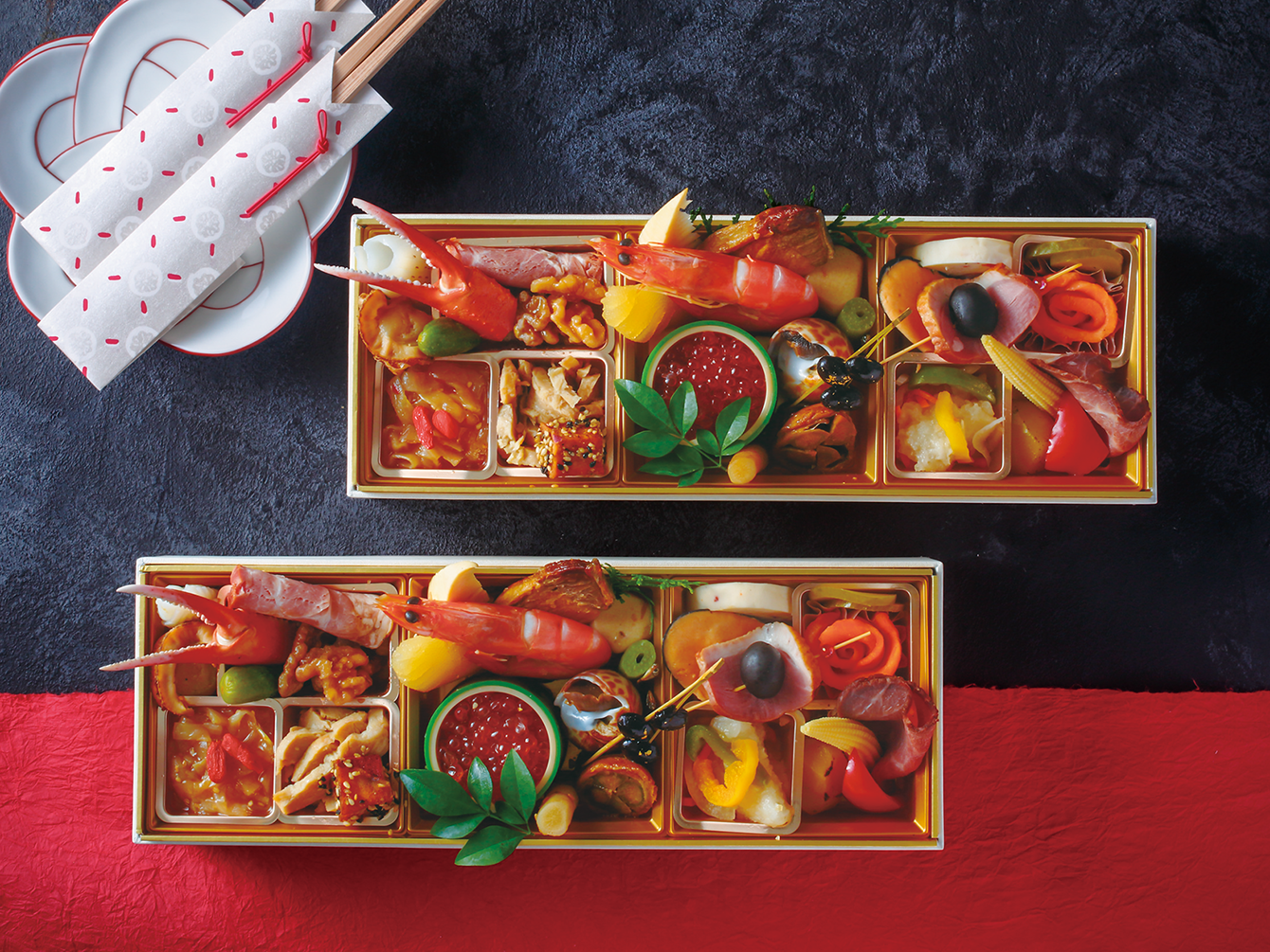 新春の主役として食卓の中心に据えたい和の華やかなおせち料理。