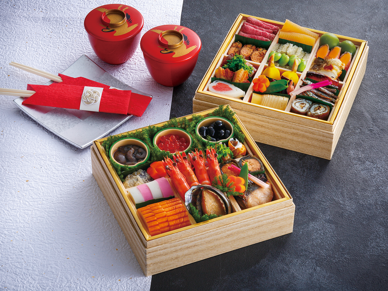 料理人の技と厳選食材による最高傑作“和食料理長 北原省吾「匠」のおせち2段”や、伝統的な和の味覚を「つきぢ田村」流に仕上げた“神戸 たむらの和風おせち料理2段”、香り豊かな広東料理の名菜が並ぶ“聚景園の中国風おせち料理2段”など、贅を尽くしたおせち料理の数々を取り揃えております。