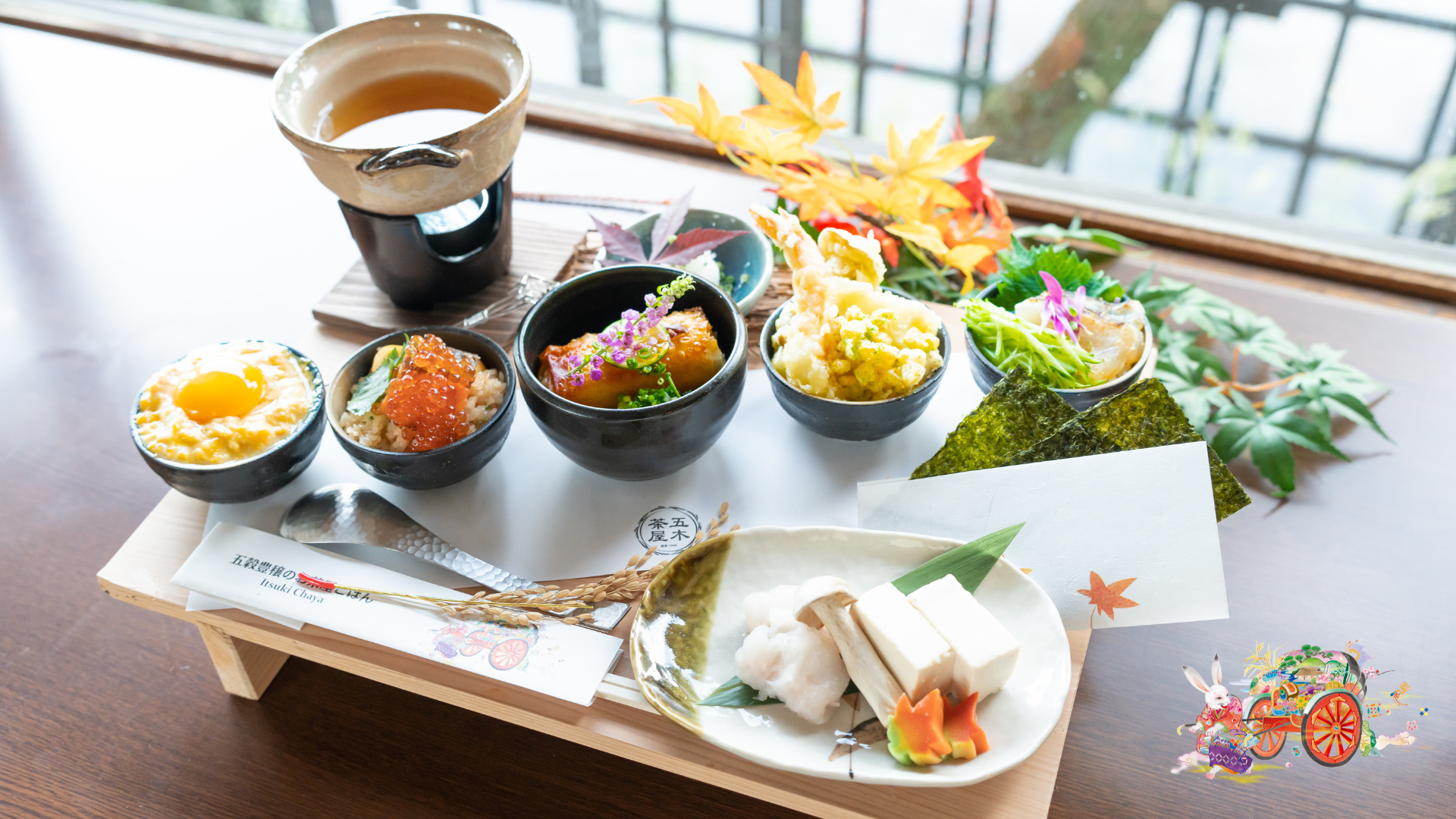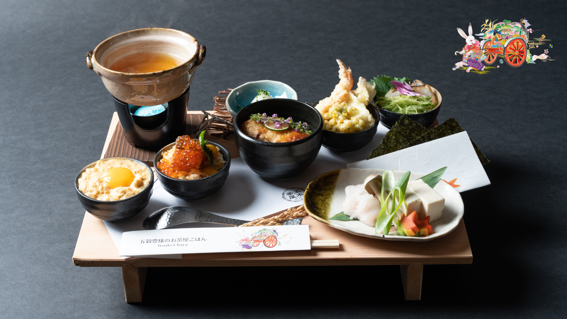 五木茶屋は昭和63年創業、Instagramで話題の五穀豊穣を祈願したこだわりの京丼五種食べ比べ膳を楽しめるレストランです。