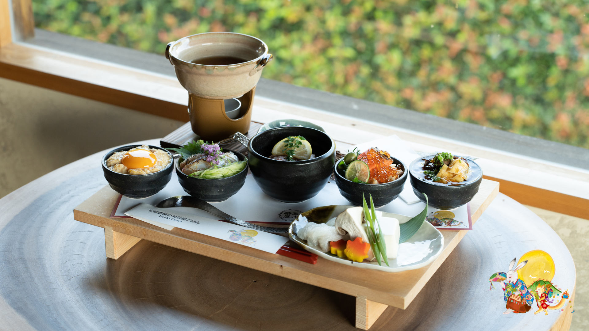 秋の京丼五種食べ比べ膳は、一番人気の「黄金の玉子丼」をはじめ、寒くなってくる季節にぴったりな鱧しゃぶと湯豆腐をご提供します。