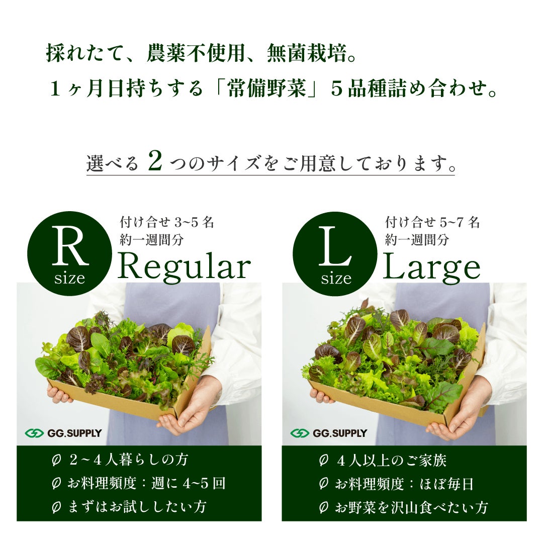 取扱い商品:今摘んだ無菌栽培・農薬不使用の葉物野菜5種詰め合わせ(3サイズ)