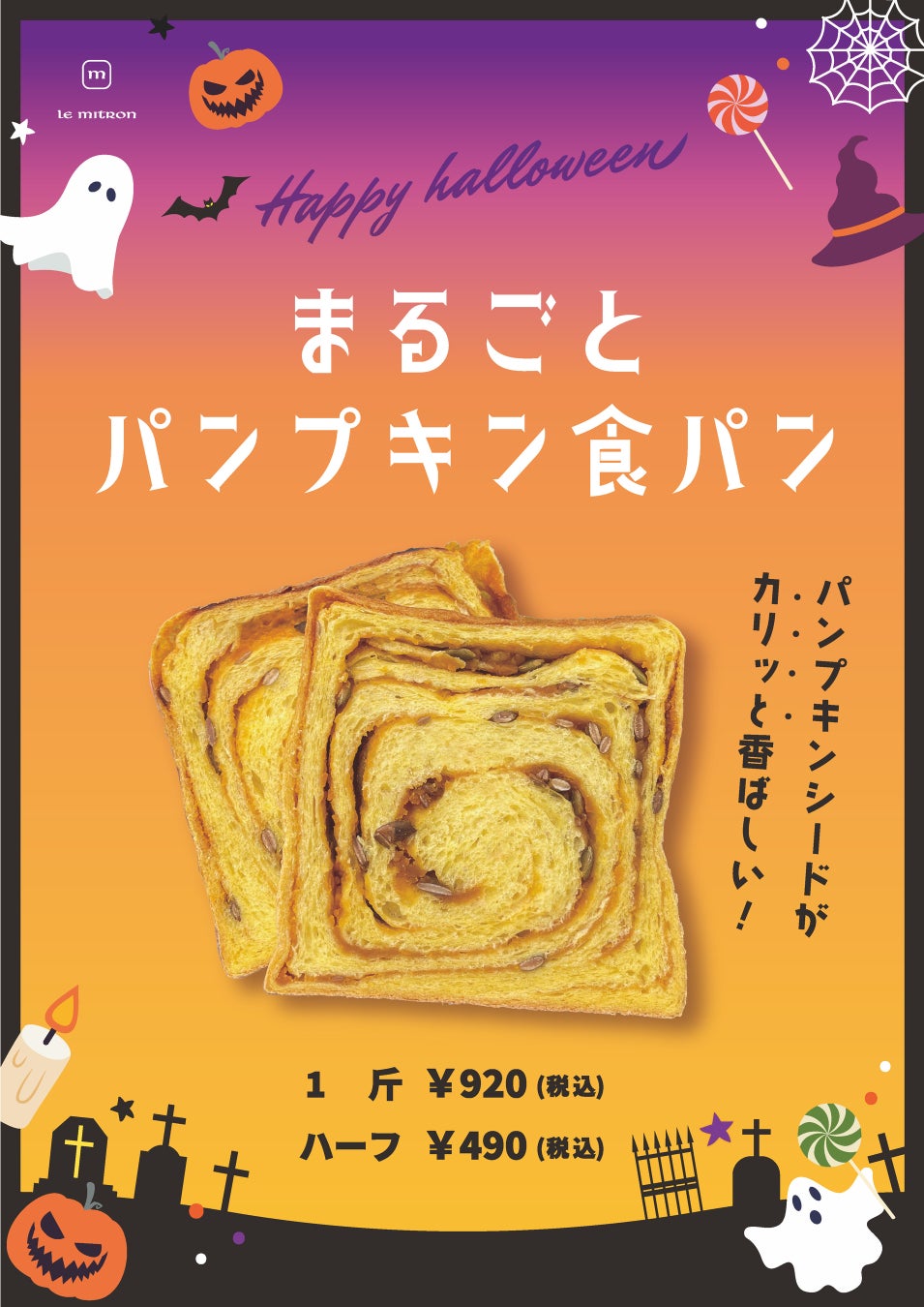 横浜生まれのバリエーション食パン店「ル・ミトロン 食パン」(ベーカリーイノベーション株式会社 / 本社:神奈川県横浜市、代表取締役山田政弘)は10月の限定メニュー『まるごとパンプキン食パン』を販売致します。