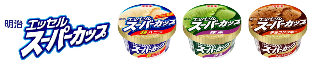 コクのある味わいとシャープなキレのあるおいしさをなめらかな舌触りで楽しめる「明治 エッセル スーパーカップ」は、1994年の発売より多くのお客さまにお楽しみいただいているカップアイスです。現在、定番のフレーバーとして、「超バニラ」「抹茶」「チョコクッキー」の3品を展開しています。