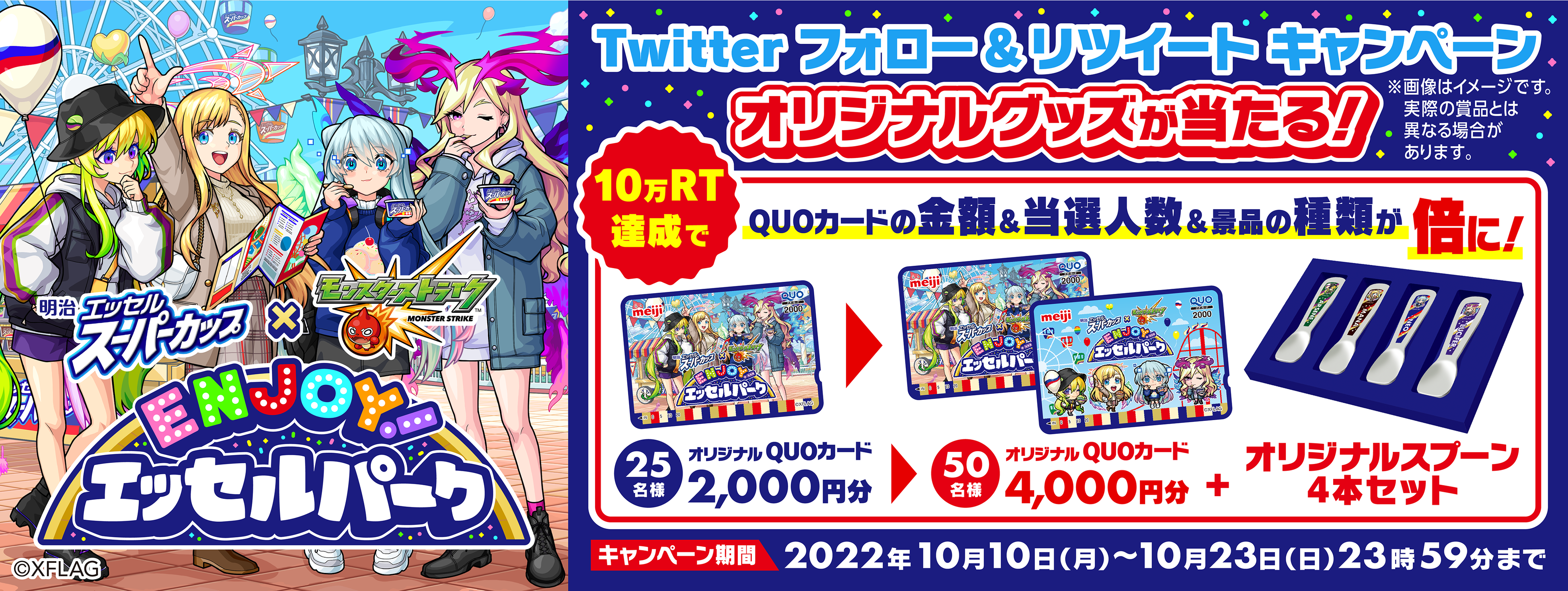 株式会社 明治(代表取締役社長:松田 克也)は、10月3日(月)より、「明治 エッセル スーパーカップ」シリーズと、大人気スマホゲーム「モンスターストライク」(以下、モンスト)がタイアップし、「ENJOY!エッセルパーク」キャンペーンを実施します。