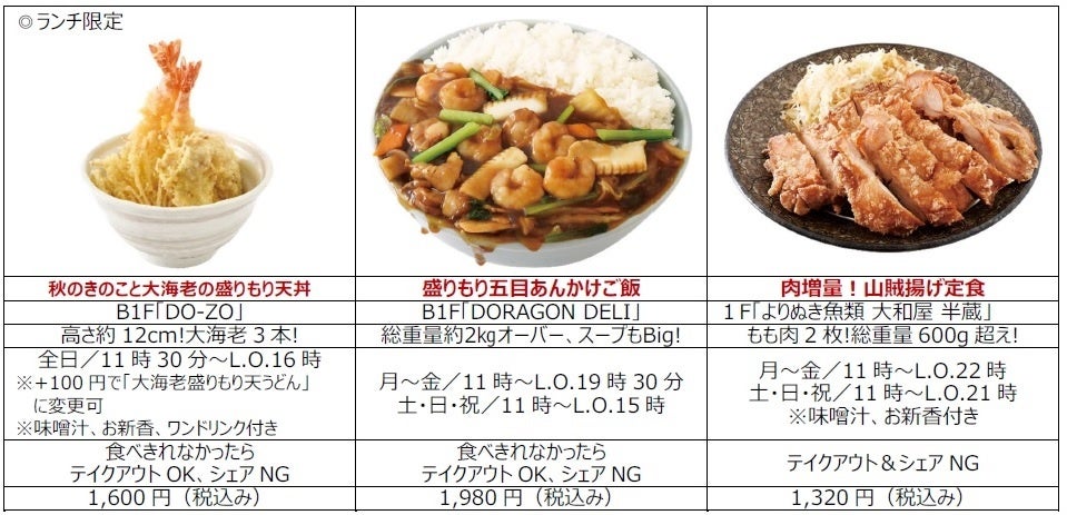 三井不動産商業マネジメント株式会社(本社:東京都中央区)が運営する「赤坂BizタワーSHOPS & DINING」では、赤坂界隈では恒例となった超大盛りメニューを提供する秋の食祭「盛りもり祭2022」を10月1日(土)から11月30日(水)まで開催します。