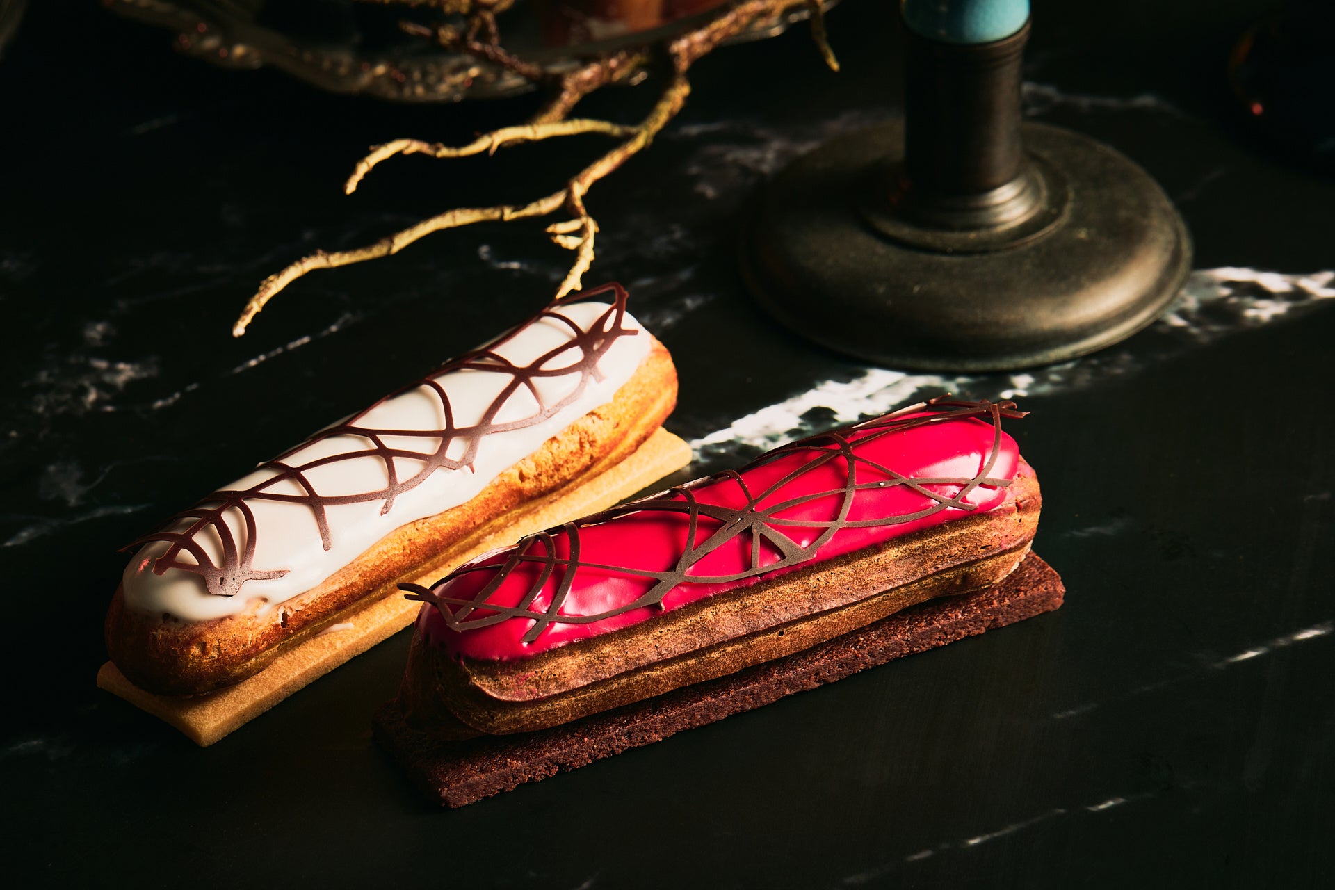 「ヴィンテージ・ゴシック」をテーマに、ビクトリアン調に退廃的でミステリアスなディテールを盛り込んだスイーツ&ブレッドで、幻想的な大人のハロウィンを。蜘蛛の巣をモチーフにしたエクレアやティラミスのほか、美しく繊細なレースの模様が浮かぶハート型のクッキーやかぼちゃあんパン、ダークトーンのカンパーニュなど、モダンで洗練されたスイーツ&ブレッドが、妖しく美しいハロウィンの世界へとあなたを誘います。