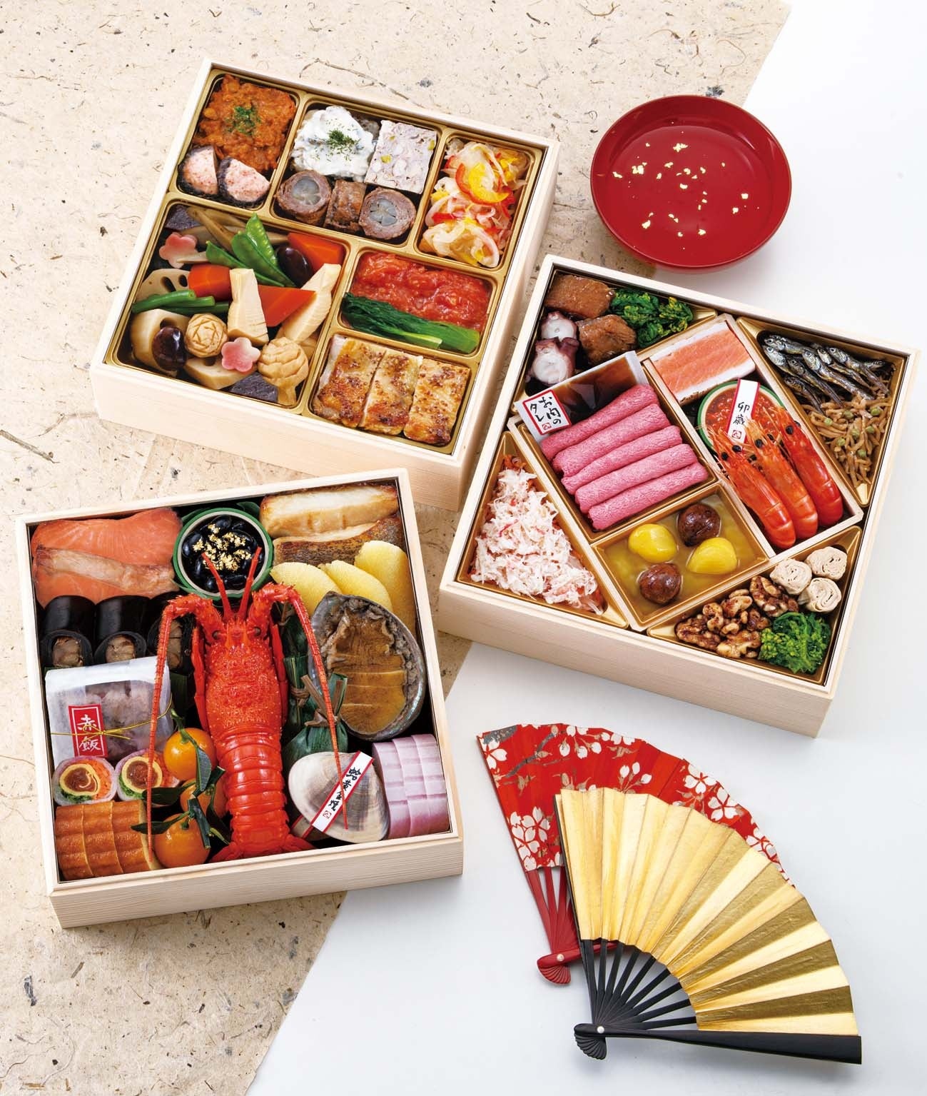 和洋中、ハレの日を言祝ぐ嬉しい縁起物を沢山詰め込みました。今年は人気の「幸」「福」2種類に加え、さらに団欒を贅沢に彩る“近大マグロ”と“国産とらふぐ”を詰め合わせした「祝膳だい九セット」も販売いたします。
