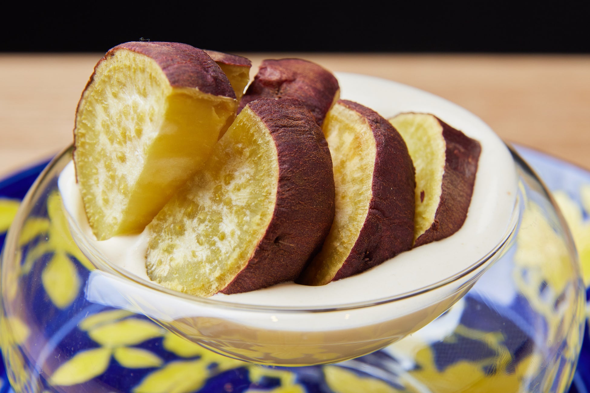今回の新メニューも『日本料理 縁日』の店主 佐藤 雄一氏に、「ロイテリヨーグルト」の味わいを生かしながら、旬の食材と組み合わせた料理を考案していただきました。旬の食材であるさつまいもを使用した「蒸しさつまいもと胡麻ヨーグルト」をコース内で提供しています。今回のレシピ考案でも、1.砂糖を使用しない 2.ヨーグルトの熱加工をしない 3.家庭で試しやすい食材・簡単な作り方にする、の3つがポイントとなっており、ご家庭でも楽しく口腔ケアに取り組むきっかけになってほしいという想いが込められています。