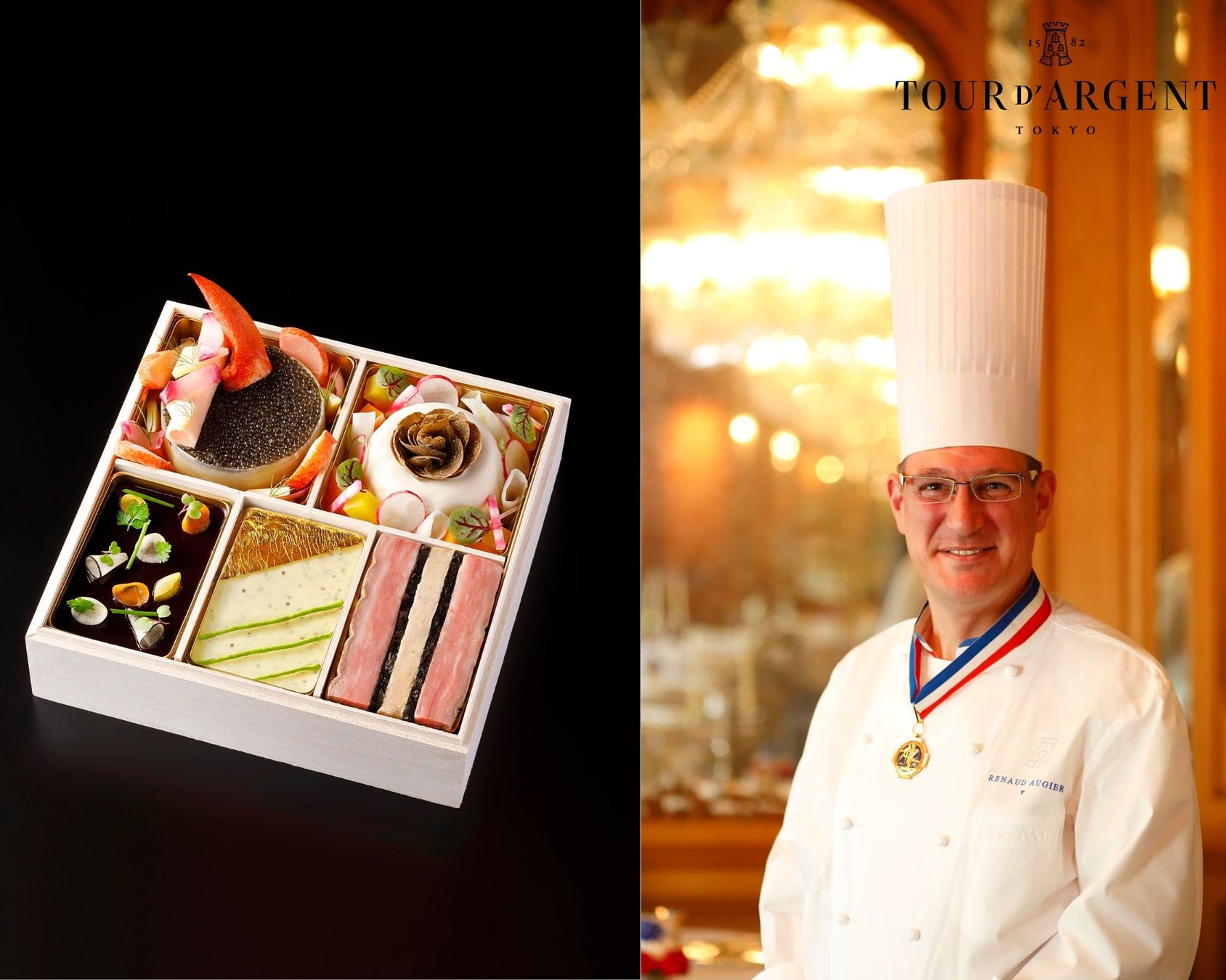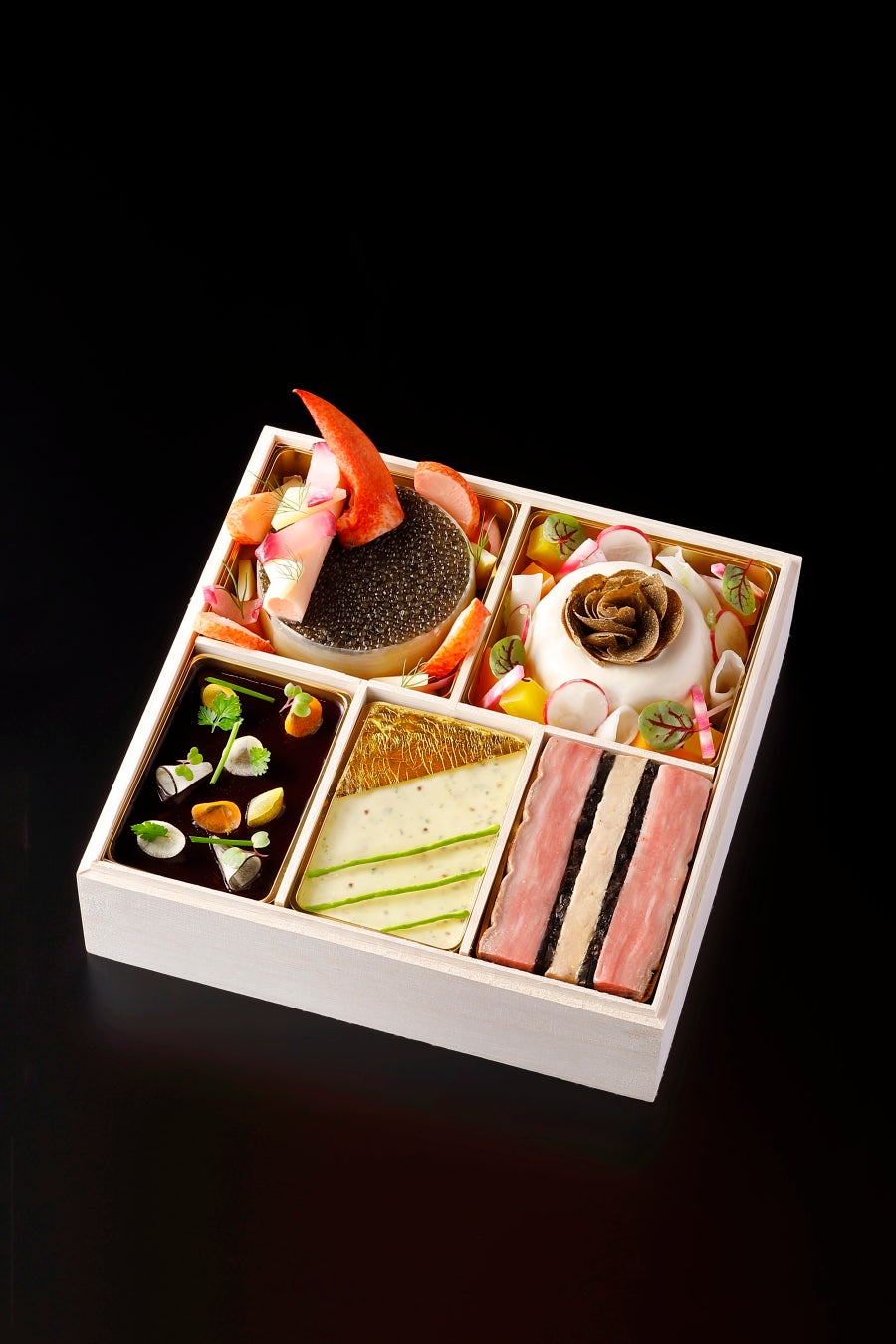 今年初の試みとして、フランス料理「トゥールダルジャン 東京」に所属し、2019年にフランス料理界最高峰の称号”M.O.F.”(フランス国家最優秀職人章)を受章したエグゼクティブシェフ ルノー・オージエが手掛ける豪華食材をあしらった一段をご用意しました。