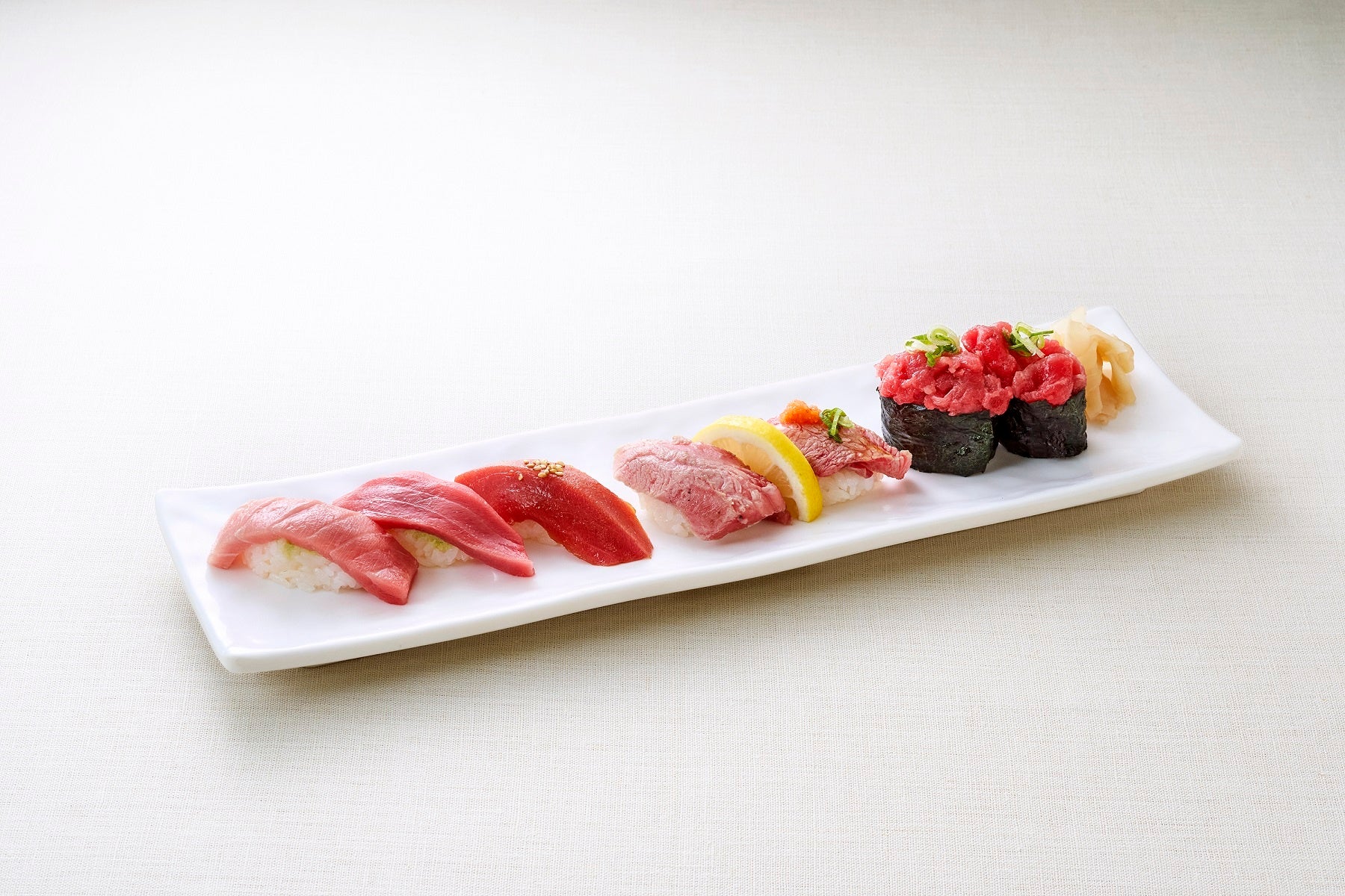 「阪神食品館」を代表する鮮魚店「阪神髭定」が手掛ける寿司店。中とろ、赤身、ホホ肉など本まぐろを味わい尽くすメニュー。