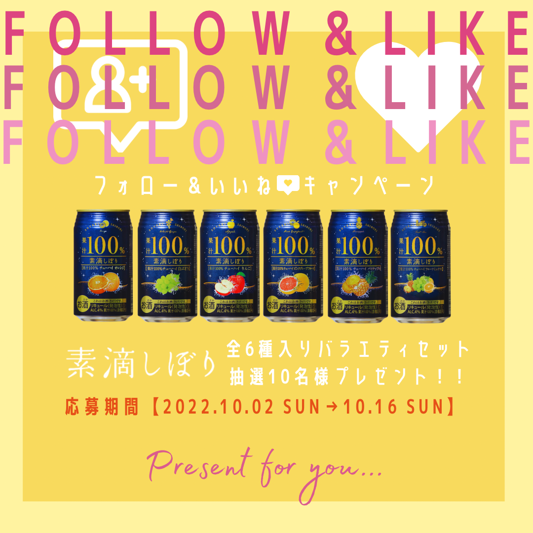 - 「素滴しぼり果汁100 %チューハイ」公式Instagramアカウント(https://www.instagram.com/sutekishibori/)をフォロー