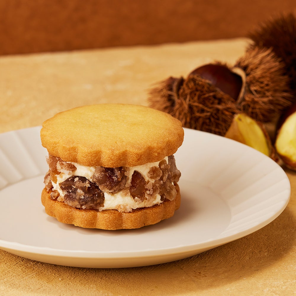 昨年人気の「バターサンドラムマロン」が復活。バター香るしっとりクッキー生地に、ラム酒風味のなめらかなくちどけのクリームとマロングラッセをサンドしました。厚みのあるクッキー生地にたっぷりのクリームを挟んだ満足感ある重厚なバターサンドは、コーヒーとの相性も抜群。手土産にもおすすめの一品です。