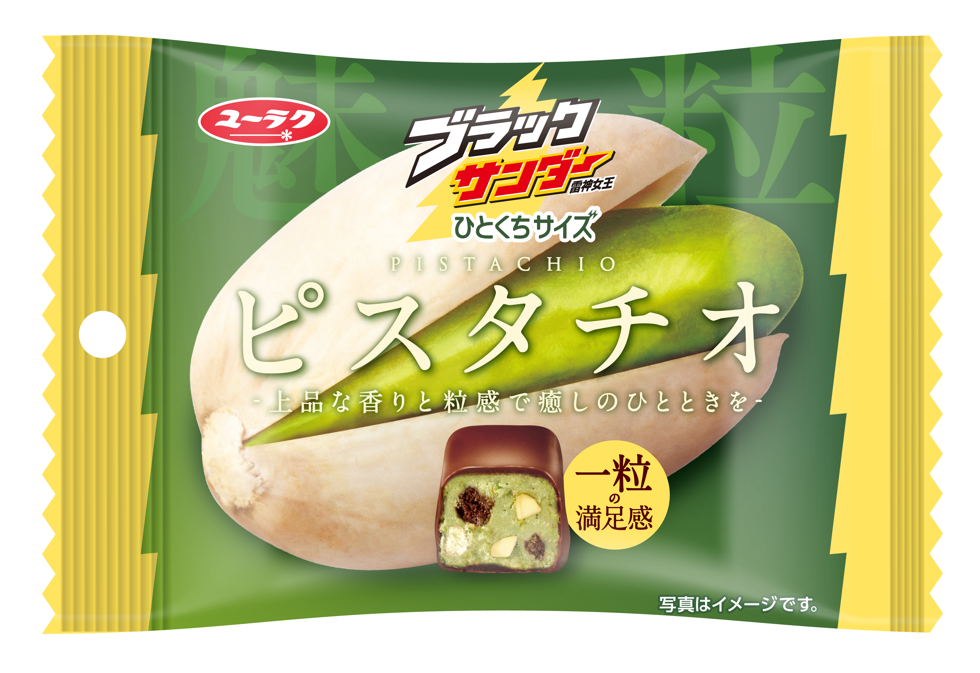 - ひとくちサイズ史上最も売れた(※)フレーバーが今年も登場!『ブラックサンダーひとくちサイズピスタチオ』が新発売! (※)コンビニエンス限定のひとくちサイズ、プリティスタイル商品の出荷実績ベース