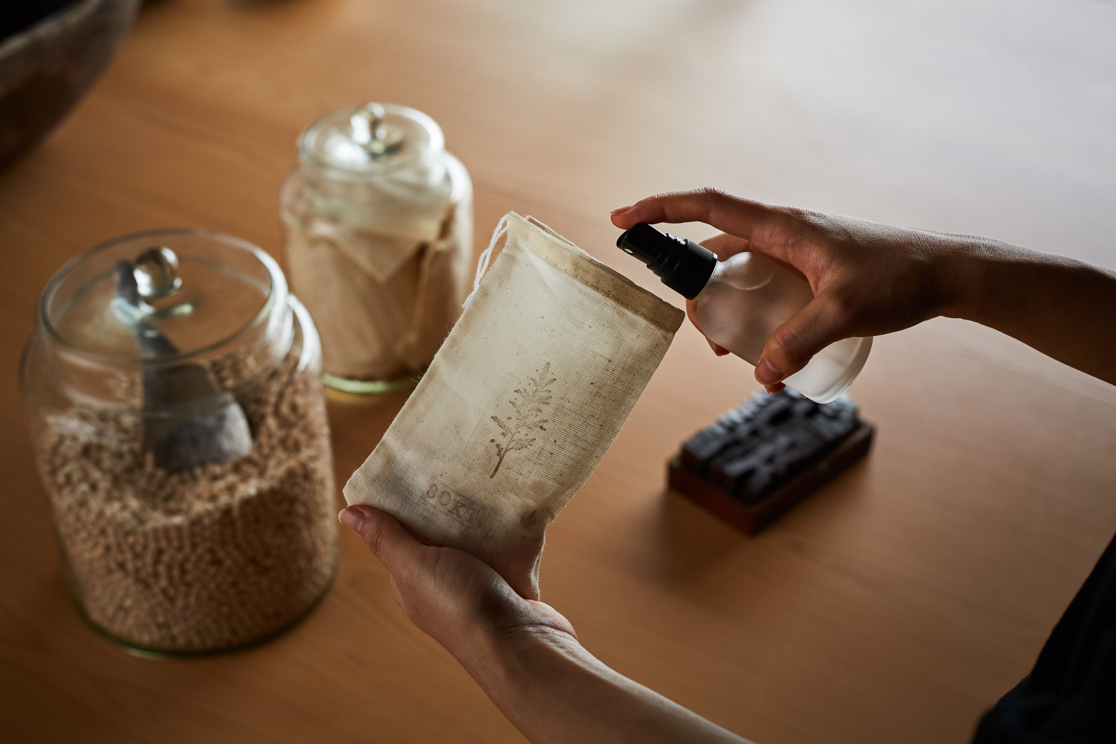 クラフトジンの味わい以外でも、秋の香りを楽しめる、サシェ(香り袋)づくり体験を茶寮にてご用意。木のチップを袋に詰め、金木犀の香りスプレーを振りかけてお持ち帰りいただけます。クローゼットやお休み時に枕元に置くなど、ご自宅でも旅の思い出をお楽しみいただけます。