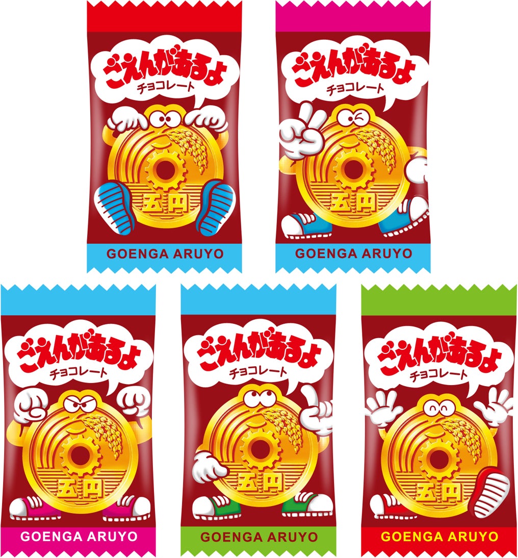 シェアもしやすいピロー包装で、キャラクターの「ごえんくん」の表情違いのデザインは全5種類♪