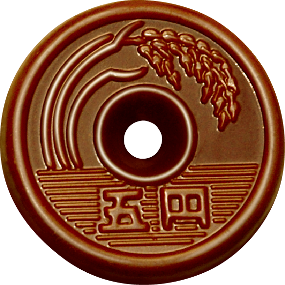 「ごえんがあるよ」は1984年に誕生した、5円玉の形をしたミルクチョコレート。発売当時は単品で販売していましたが、時代とともに、袋商品として売られるようになりました。発売から30年以上が経った今でも多くの人に愛される昔なつかしい商品です。